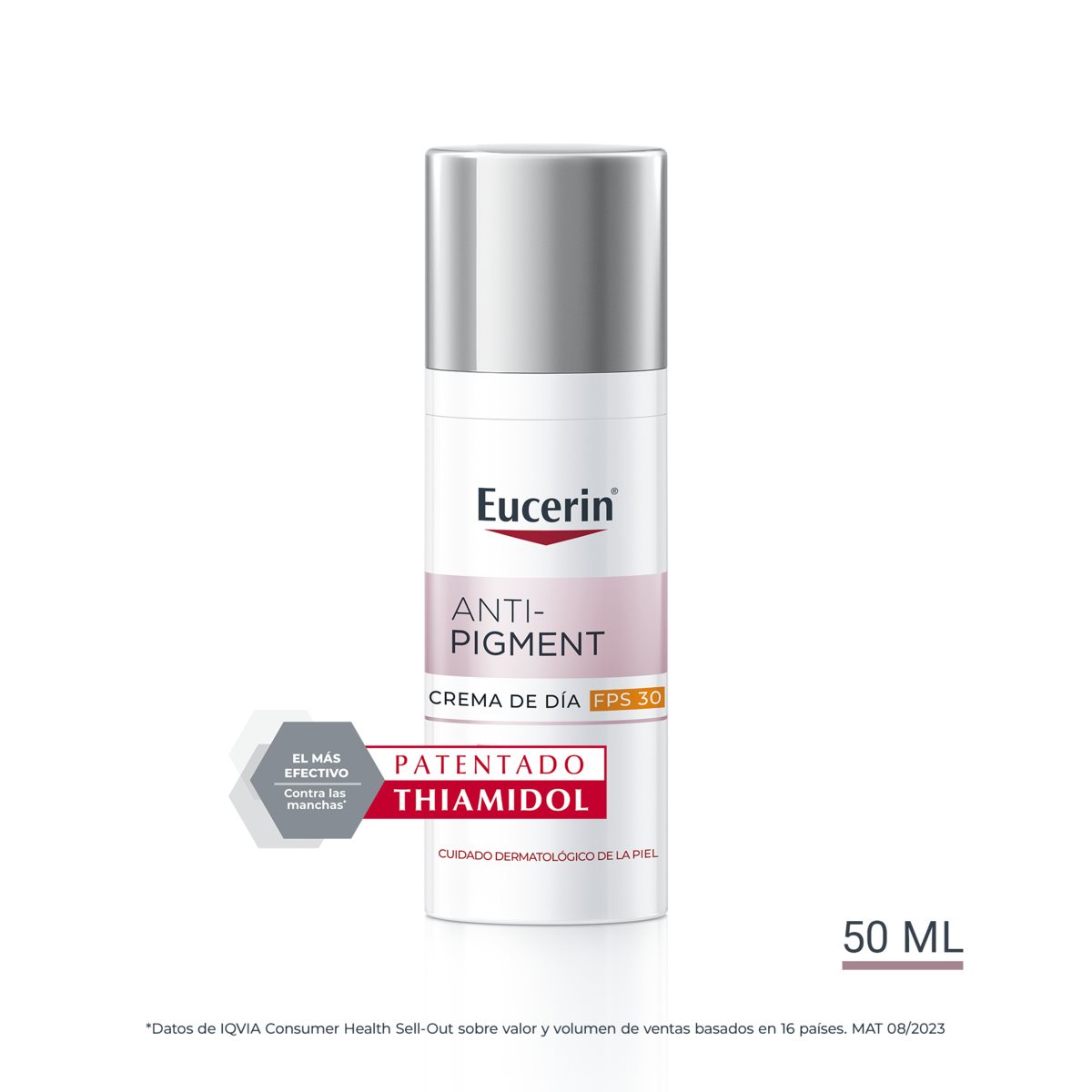 Eucerin® Anti-Pigment Día FPS 30 contiene Thiamidol®, un ingrediente eficaz y patentado que actúa en el origen de la hiperpigmentación y reduce la producción de melanina desde el día 1, con resultados visibles en 2 semanas, con el uso habitual. Se ha demostrado clínica y dermatológicamente que reduce todo tipo de manchas de hiperpigmentación y evita su reaparición.