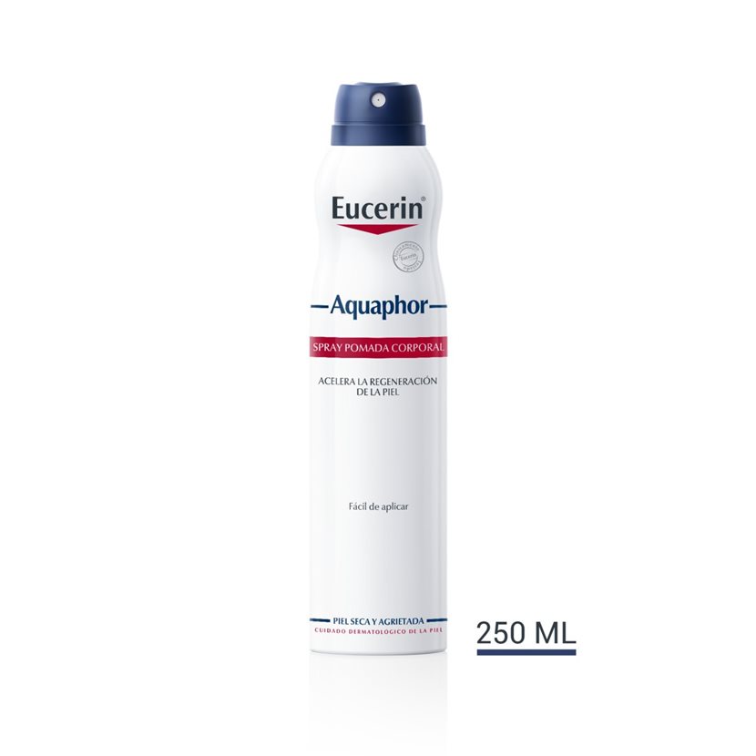 Al tratarse de un innovador dispensador de spray, Eucerin Aquaphor Pomada en Spray Corporal está recomendada para tratar áreas más extensas del cuerpo como brazos, piernas, espalda o torso. Dado que se puede pulverizar boca abajo, también es adecuada para piel muy seca en zonas de difícil acceso en que la aplicación de una pomada convencional es complicada. Evite aplicarla directamente sobre el rostro o alrededor de él. Si tiene la piel muy seca o áspera en áreas más pequeñas del cuerpo, pruebe Eucerin Aquaphor Pomada Reparadora.