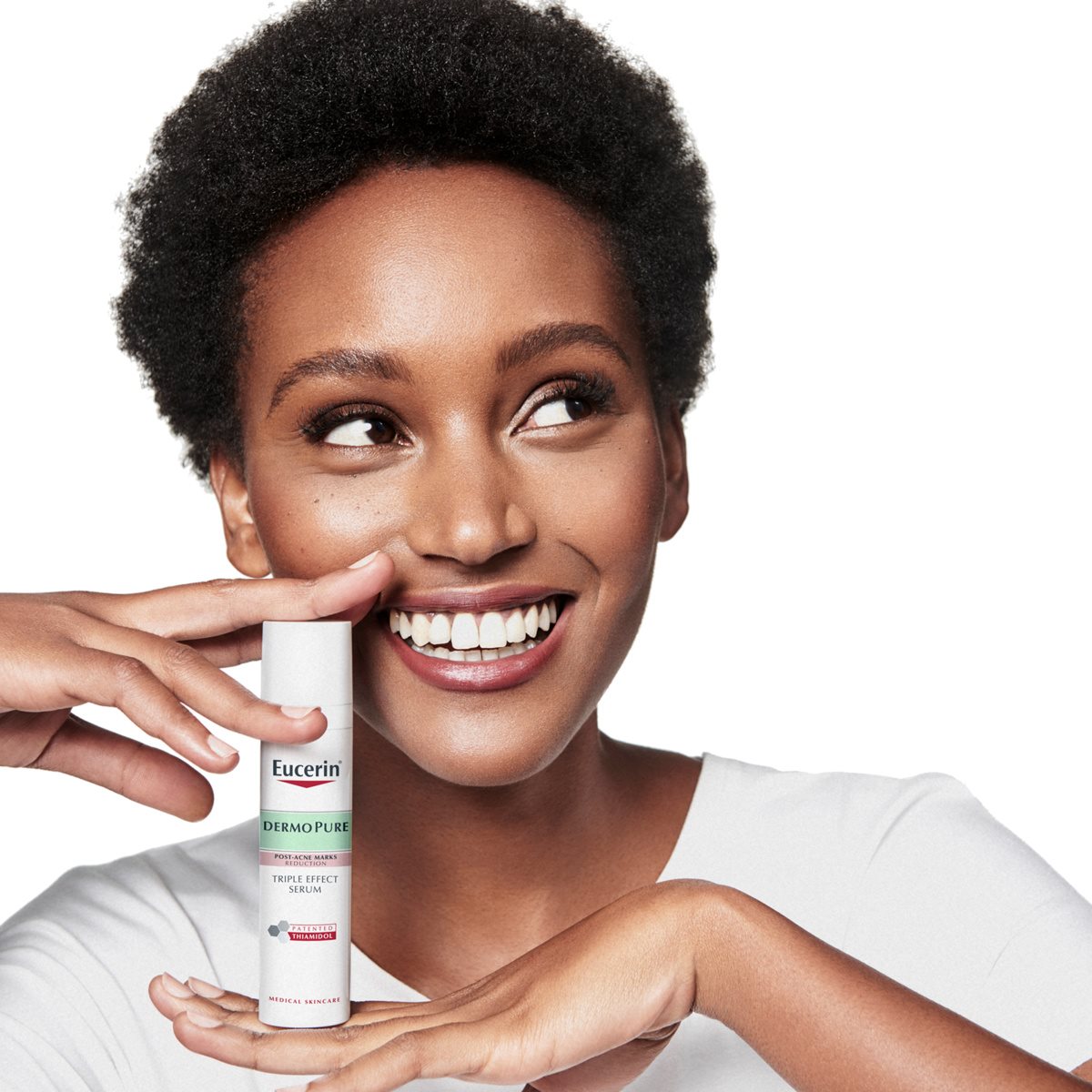DERMOPURE OIL CONTROL Serum Triple Efecto con Thiamidol patentado le permite vencer por fin las imperfecciones y las manchas post-acné con 3 beneficios clave: