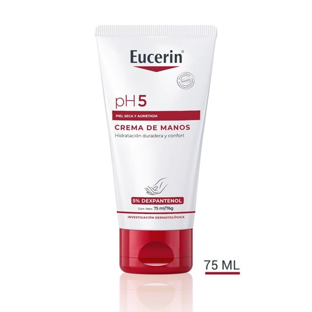 Eucerin pH5 Crema de manos ofrece una hidratación duradera, restablece las defensas cutáneas naturales, calma la piel y la protege.