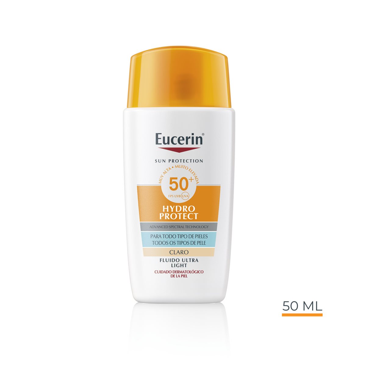 Perfumado −y con una fórmula ultraligera, no grasa y de absorción rápida que no deja residuos después del uso−, Eucerin Sun Face Hydro Protect Ultra-Light Fluid FPS 50+ ha demostrado clínica y dermatológicamente una excelente tolerancia en todos los tipos de piel, incluida la piel sensible.