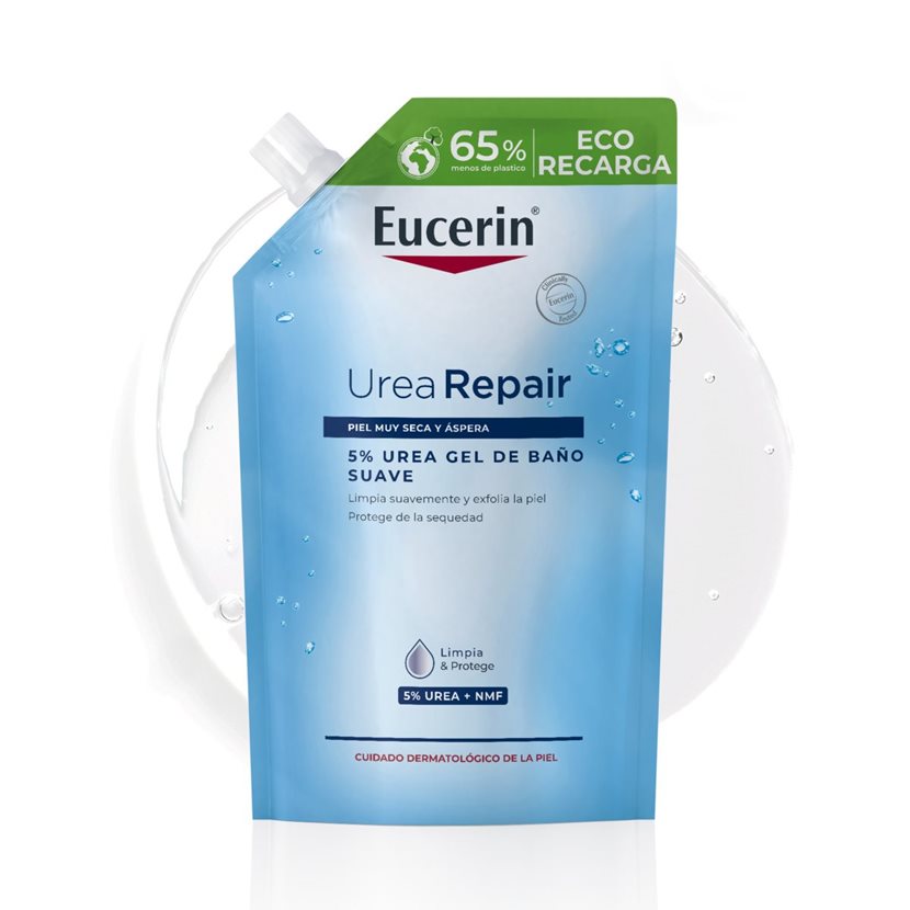 Eucerin UreaRepair 5 % Urea Gel de Baño Suave es un limpiador suave para rostro y cuerpo sin jabón ni perfume especialmente formulado para el uso diario en pieles muy secas, ásperas e irritables. Con una combinación exclusiva de ingredientes hidratantes —urea y otros factores naturales de hidratación— limpia y exfolia suavemente la piel áspera sin alterar la barrera cutánea. La piel está visiblemente más suave y se nota revitalizada.