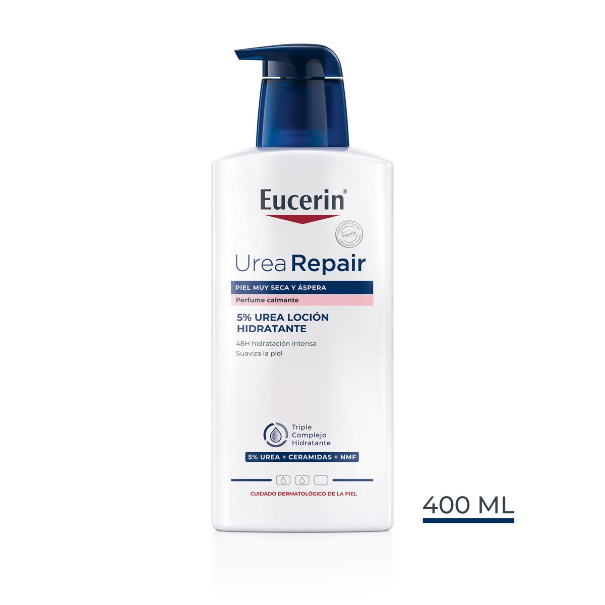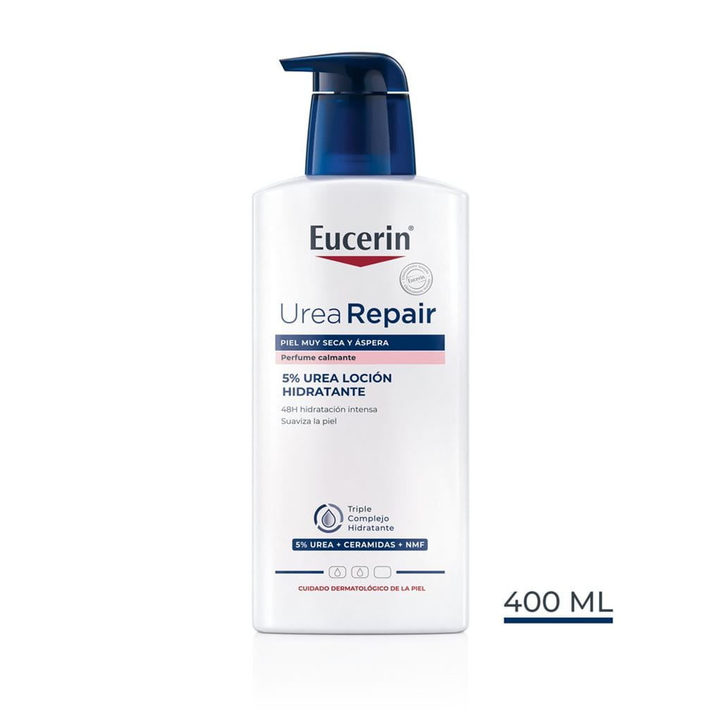 Eucerin UreaRepair Loción Hidratante 5 % Urea (perfume calmante) proporciona a la piel seca y áspera el cuidado diario que necesita.